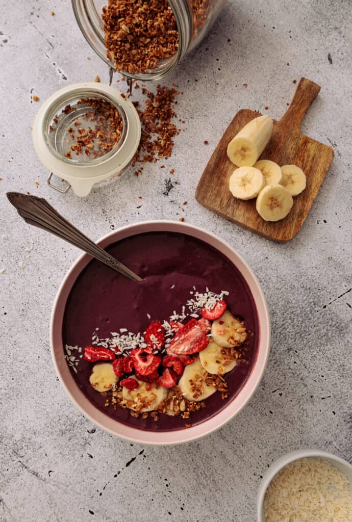 – Toppings (Granola, Banane, Früchte, Kokosraspeln etc.)