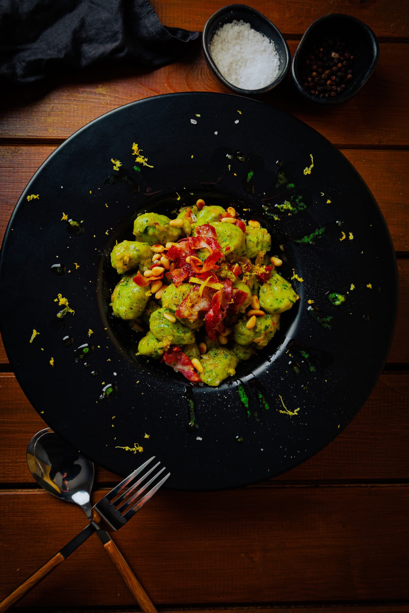 Bärlauch Gnocchi mit Butter, Bacon & Pinienkernen – einfach & aromatisch