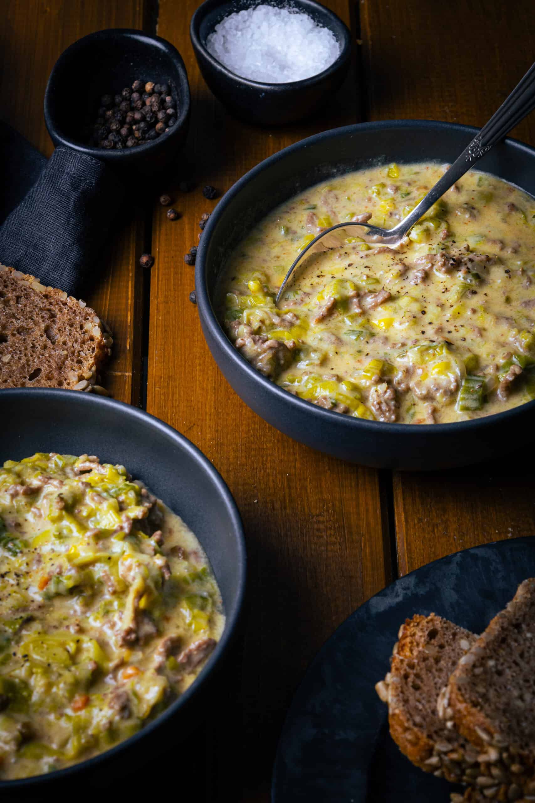 Hackfleisch-Käse-Lauch-Suppe – cremig & herzhaft