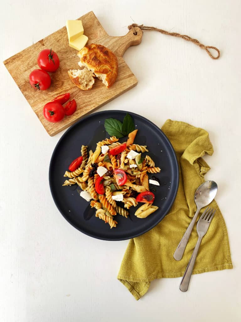 Bei uns darf hier auf keinen Fall dieser leckere italienischer Nudelsalat fehlen.